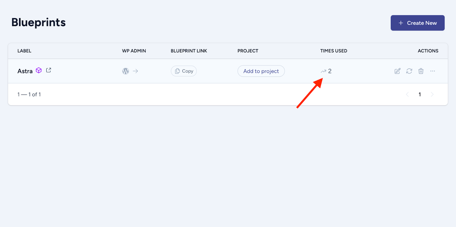 - Click on the three-dot menu of the site you want to create a blueprint from.
