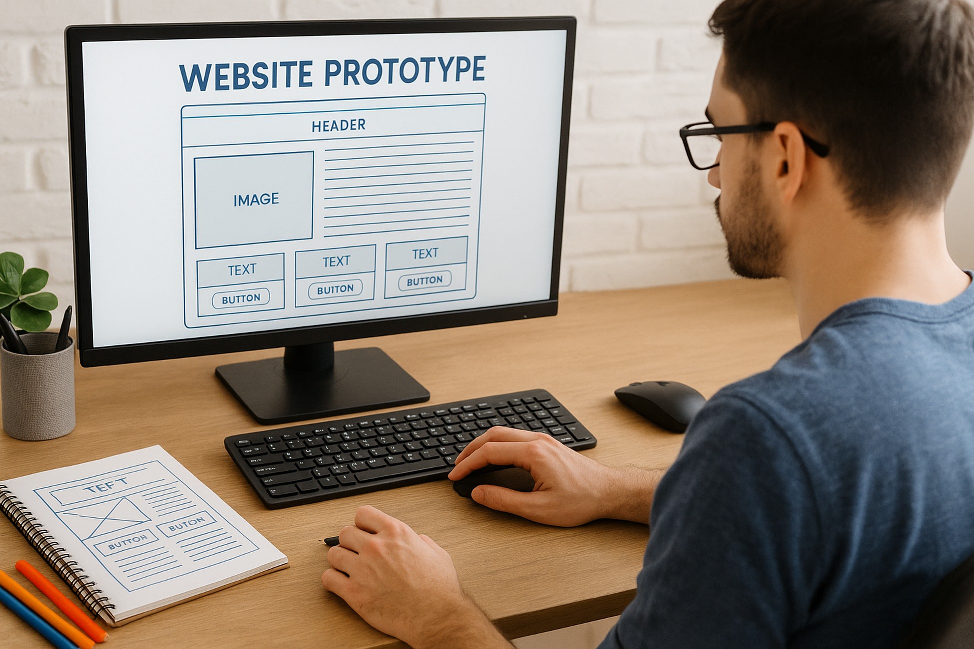 A prototype is an interactive version of your design. It looks like a finished site or app, but nothing is live yet. You can click buttons, open menus, and walk through user flows, just like a real user would.