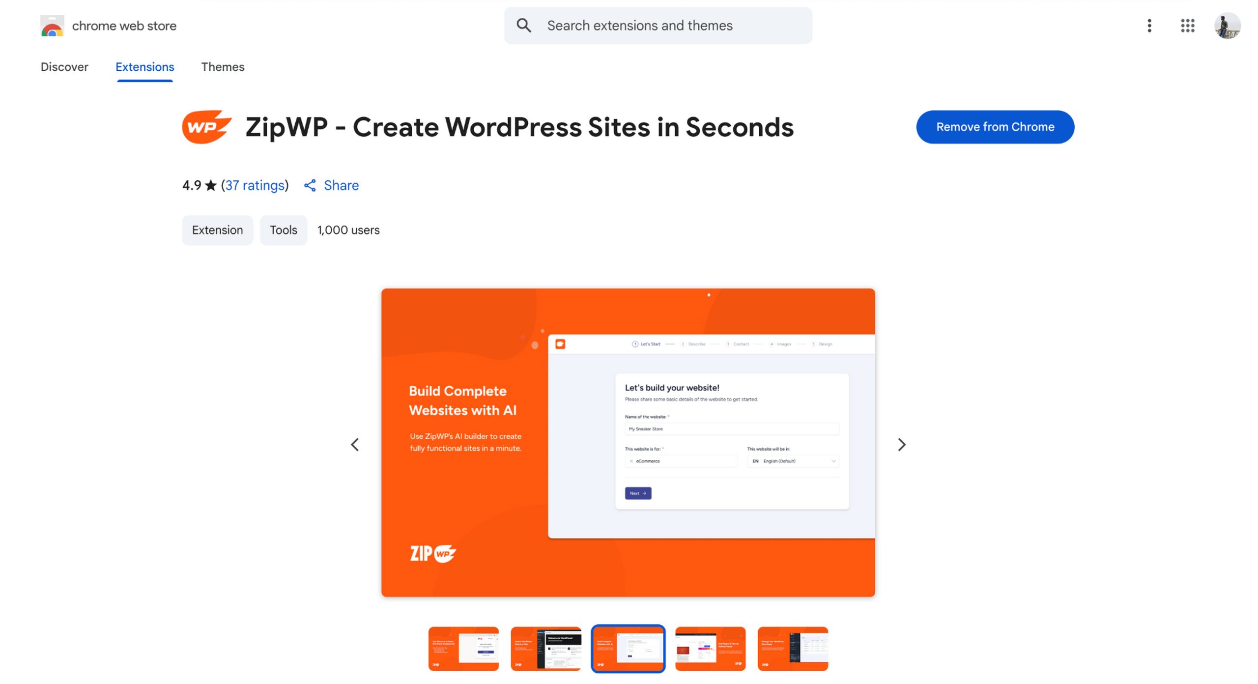 ZipWP became even more powerful with our Chrome Extension. The extension provides one-click access to features like launching WordPress sites instantly and creating sites from LinkedIn, Google My Business, and Yelp profiles.