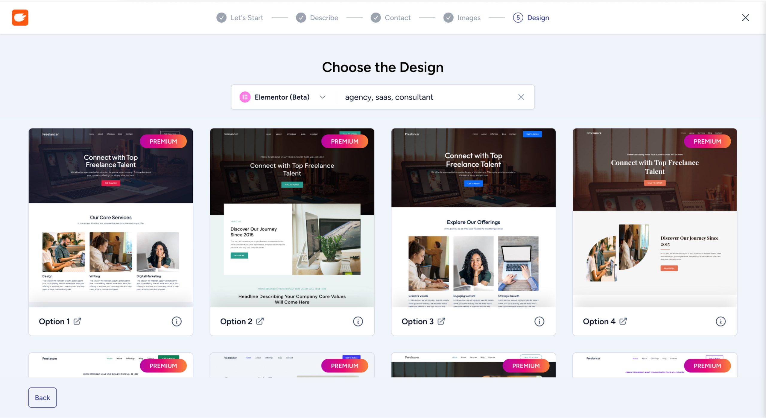 Users also wanted more flexibility after site creation, so we added support for Elementor, including a growing collection of Elementor-ready designs.