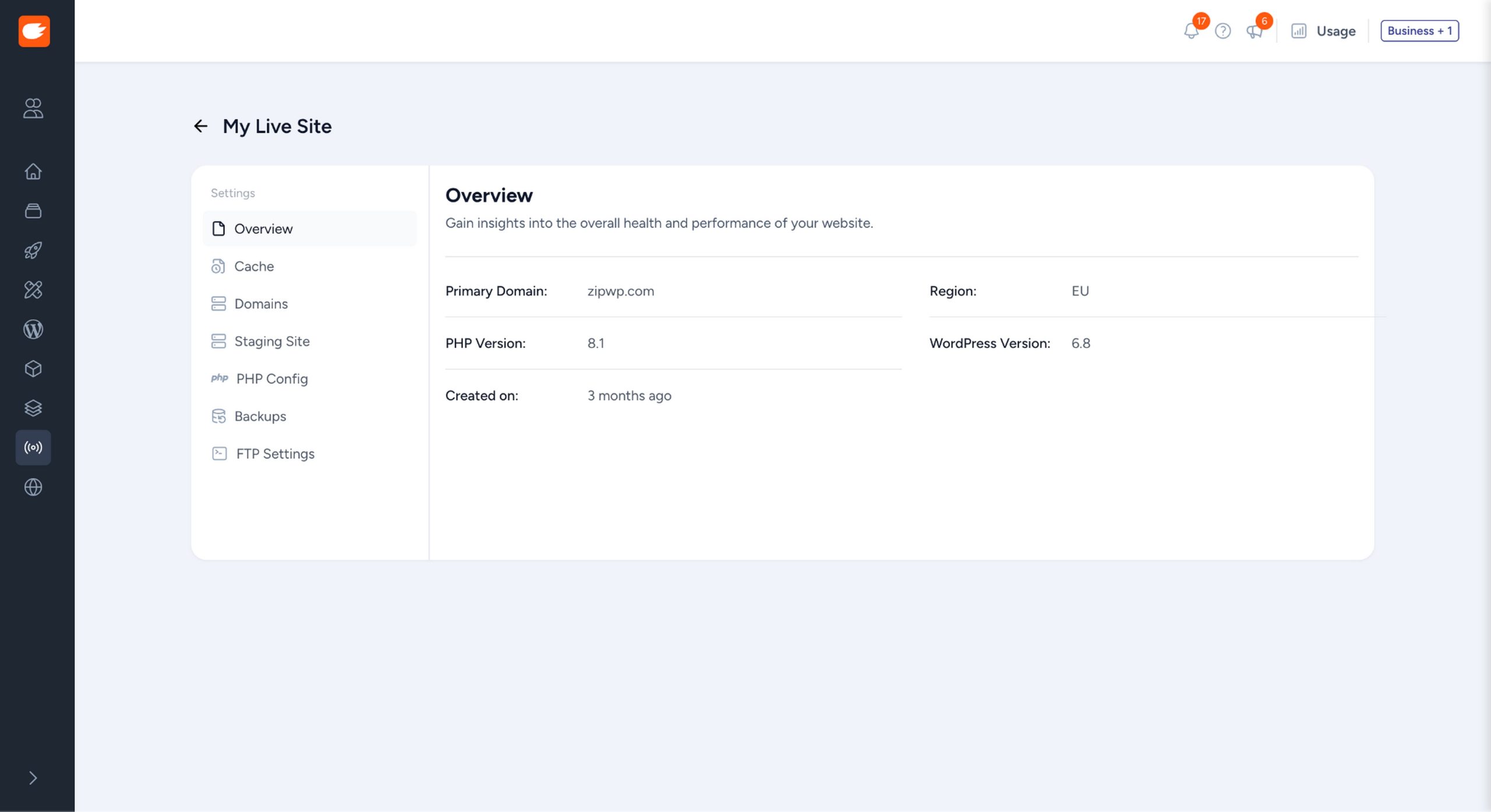 - One-click hosting – instantly launch your site without leaving ZipWP