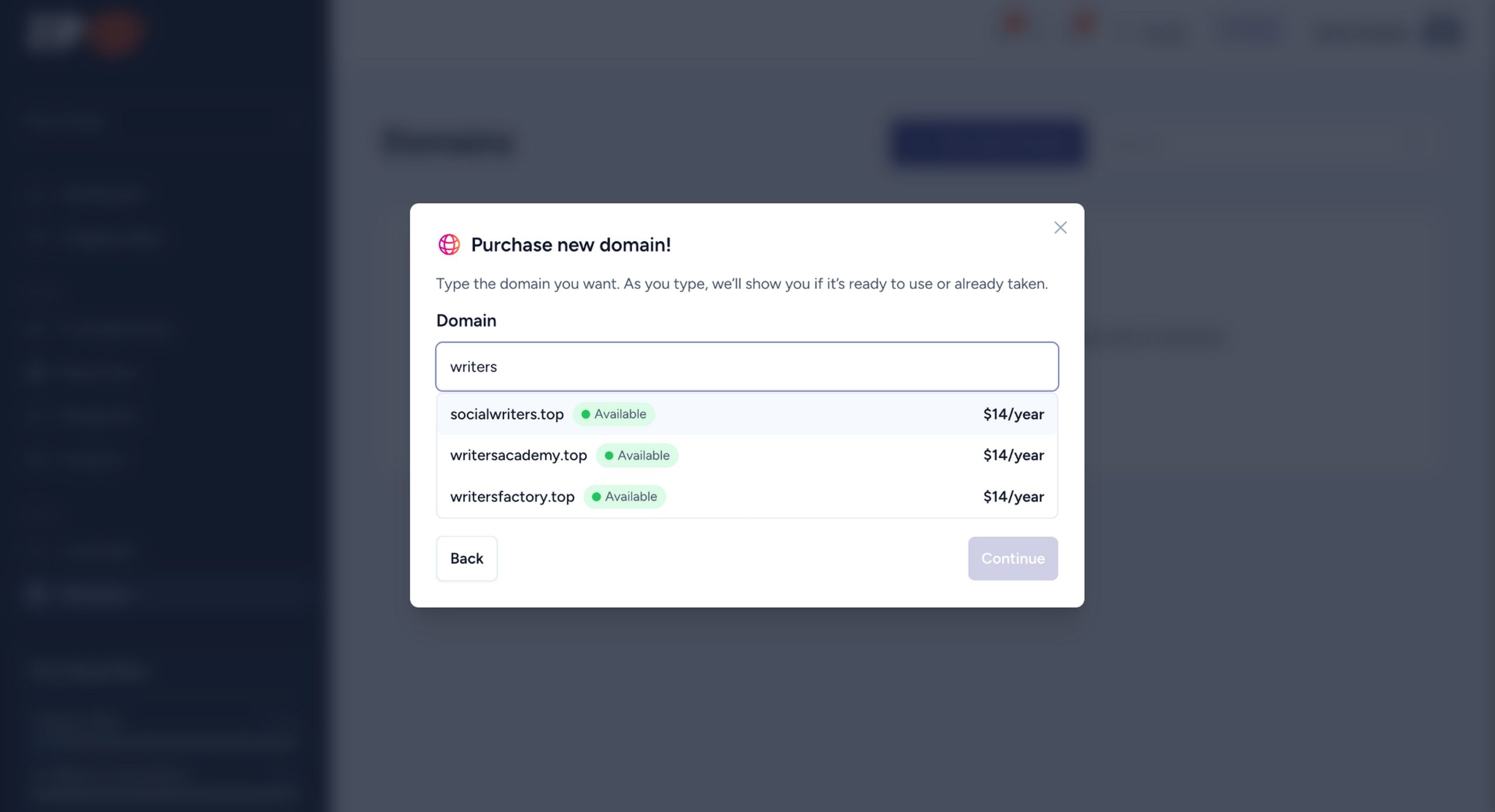 Very soon, you’ll be able to buy domains directly from ZipWP and connect them to your site. That will make ZipWP a true all-in-one platform for website creation and hosting.