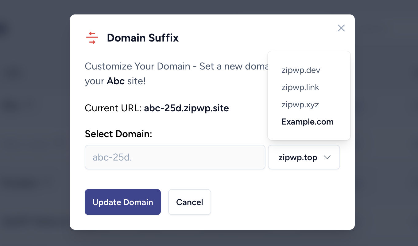 For example: Let’s say your site is example.zipwp.dev. You can now quickly change it to example.customdomain.com without any hassle. Perfect for sharing polished, branded links.