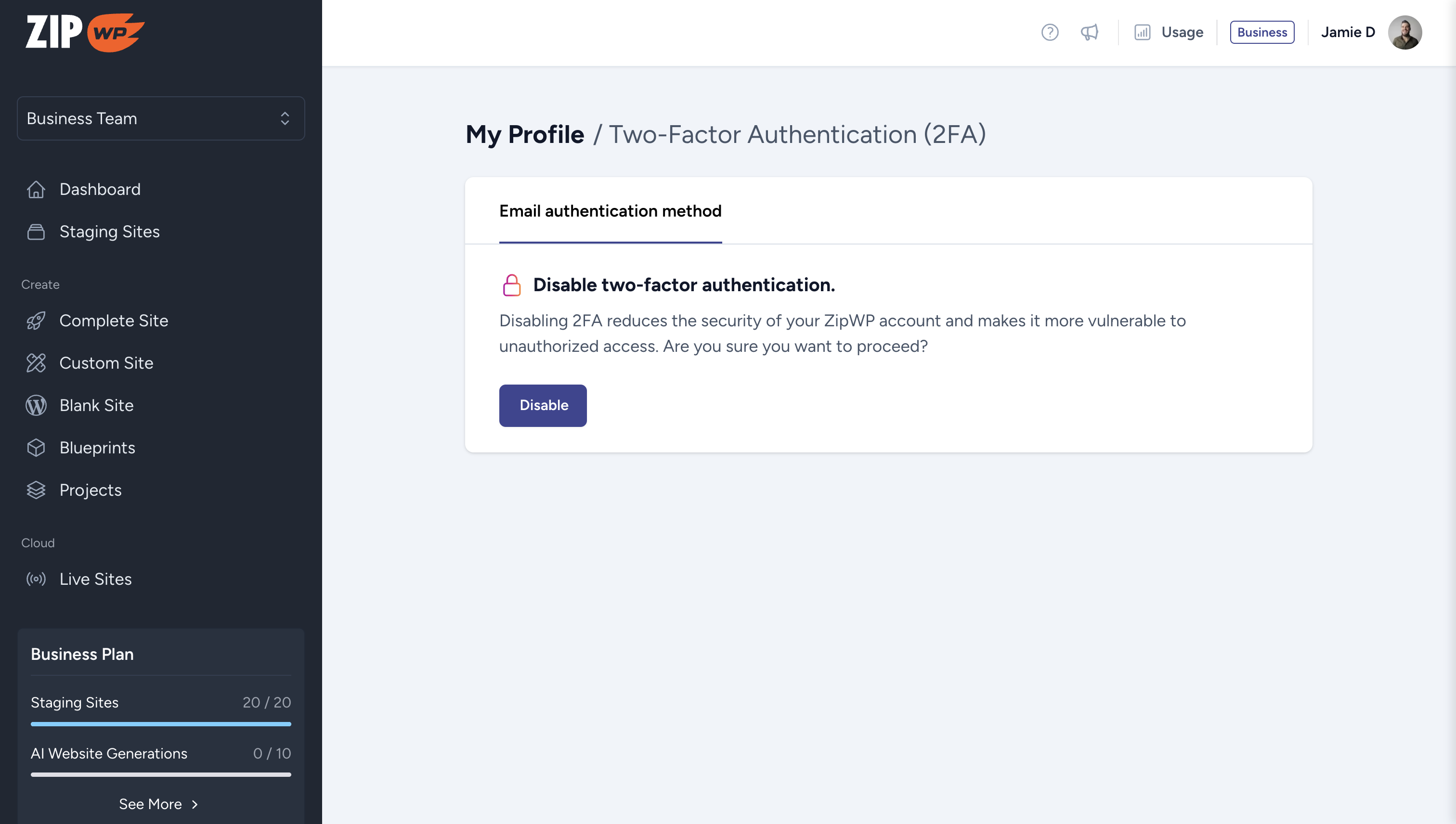 We’re excited to introduce Two-Factor Authentication (2FA) via Email—an extra layer of security to keep your ZipWP account safe and protected.